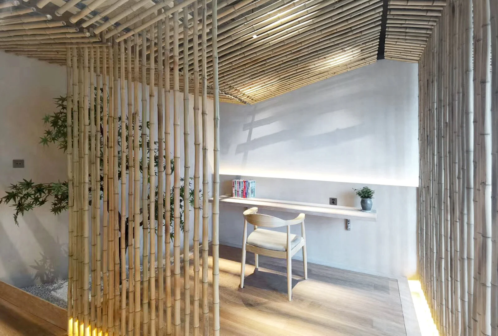 Interior renovation is usually not an eco-friendly activities, as the paints and amount of glues are used, often produced many toxic and harmful substance. In order to be sustainable, and fit the current trend of healthy and organic, natural clay plasters are used to replaced the artificial materials. In this showroom, we want to maximise the experience of the natural clay product by creating a relaxing atmosphere, where the customer will get an impression of being inside mother nature, by using natural materials only, such as clay, bamboo and wood products.